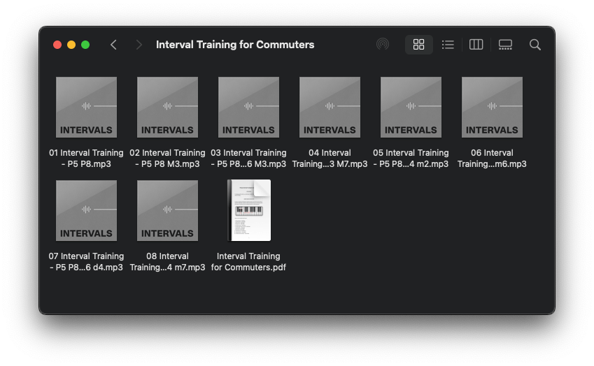 These musical intervals tracks are loopable and you don't need to skip around in the audio, allowing you to learn while driving or doing chores.
